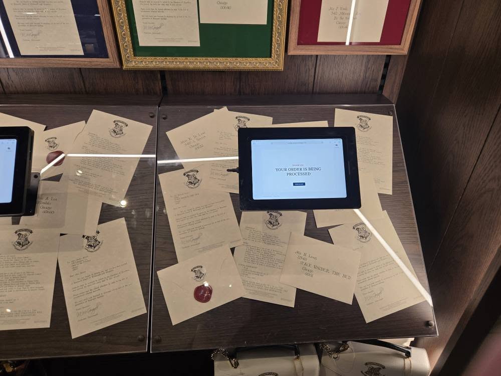 They also had an area where you could make your own personal Hogwarts letter and it does ask for your address and postcode along with your first and last name but don’t worry you can have fun with it by making up a fake address to put down and you do not have to put your real address because they will just print it out at the shop and not send it to your house.